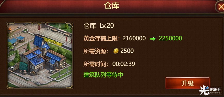 在仓库中,升级等级可以提高黄金储量上限。游戏中随着等级的提高,黄金的产量也会越来越多。尽早提升仓库等级可以避免资源的浪费。