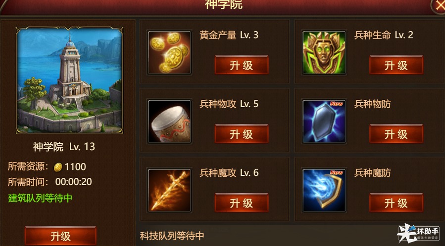 在到达21级后,领主们就可以解锁神学院了。在神学院中可以升级大量的科技,例如黄金产量,领主攻防,士兵攻防等。同样随着建筑等级的提高,这些科技的上限也会提高。