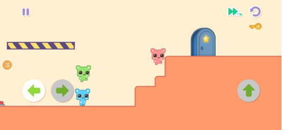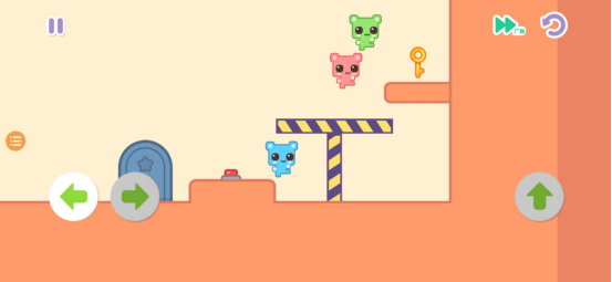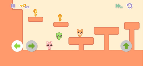 游玩本作之前,记得要把手机的数据网络都关闭哦,不然游戏中的广告还是很影响玩家的体验感受的,游戏的玩法还是比较简单的,玩家只需要通过左右上移动去控制角色的方向,拿到通关的钥匙,最后带领两个小伙伴一起成功通关,不过有些操作难度的就是,玩家只能操作粉色的小萌猫,剩下的两个只是跟在它的后面重复粉色小萌猫的动作,而在关卡内进行操作时,还必须要借助两个小萌猫的身高,进行跳跃拿到钥匙,所以给到玩家的体验操作还是有些趣味性的,但是就闯关难度来说的话,并不是很难,也就不用担心卡关闯关不过的因素啦。