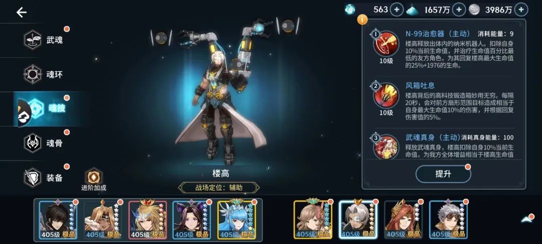 魂技分析:魂技全是单体回复技能,缺少群体回复。