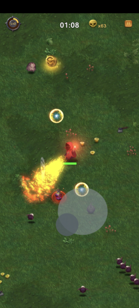游戏虽然是英文版语言,但是游戏并未有线索推进和剧情发展等等,而是简单的道具介绍及使用,所以说在整体体验上玩家并不用担心因为语言的问题而拉低游戏体验,游戏的开局玩家所扮演的则是一个法师,开局自带光环的法师哦,玩家可以直接的去进行操作,基于虚拟摇杆控制移动方向,虽然说较为简单好操作一些,但是在操作的流畅度上还是差了一些,不过对于游戏整体的探索流程,游戏可以说设定的还是较为不错的,到达一定的节点会有到升级,也会有到额外的技能加持,可以很好的帮助角色提升伤害能力。
