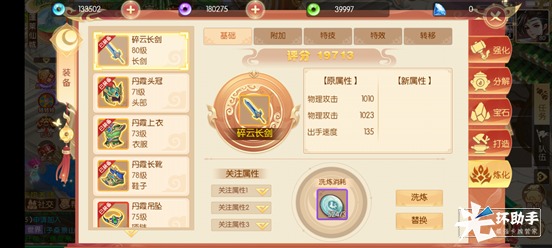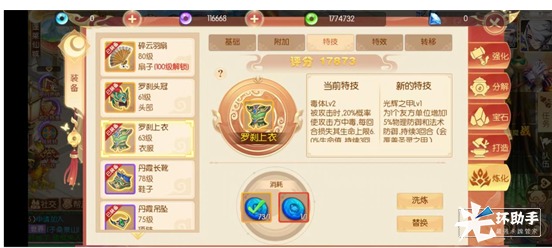 讲完基础的,讲讲装备的特殊属性。在游戏的炼化中可以对装备进行更深层次的锻造,除了可以洗炼装备的基础属性加成以外,【附加】和【特技】也是非常重要的一点。附加可以提供百分比加成,这个在前期效果可能不是那么突出,但是越到后期,他就越强势。特技是装备给角色提供的特色怒气技能,一个好的怒气技能能让你在对战中打出意想不到的效果。