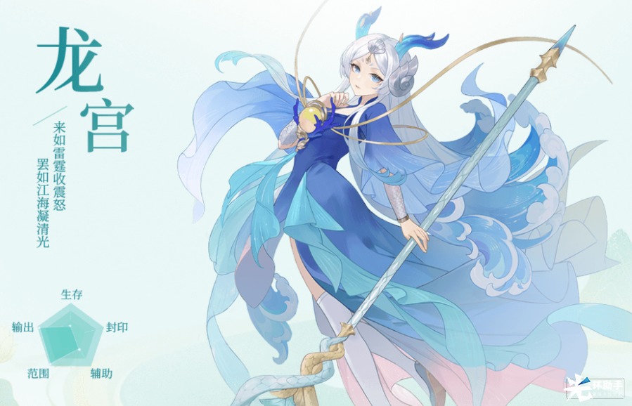 龙宫可使用风雷浩荡和紫电落快速给场上敌人附带龙鸣印记,配合水龙吟和游龙啸进行持续的暴击输出。在终极技能沧龙破阵歌冷却完成后,使用技能对现场携带龙鸣印记的敌人进行攻击,能最大限度对敌人造成毁灭性的伤害。如果你是颜控+实力控,那龙宫会是你的不二选择!