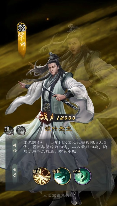 目前推荐的控制系侠客有杨逍、黄衫女、空闻、银叶先生和紫衫龙王。其中杨潇是目前当之无愧的T0级控制系侠客。自身技能乾坤大挪移,除了可以伤害敌方全体角色外,同时有极高的几率使目标被封穴,被封住的敌人将会在两回合之内无法输出。尤其是在心法天地风雷的加持下,对于被中毒目标封穴几率进一步提升,所以杨逍搭配一些有中毒效果技能的侠客非常好用。