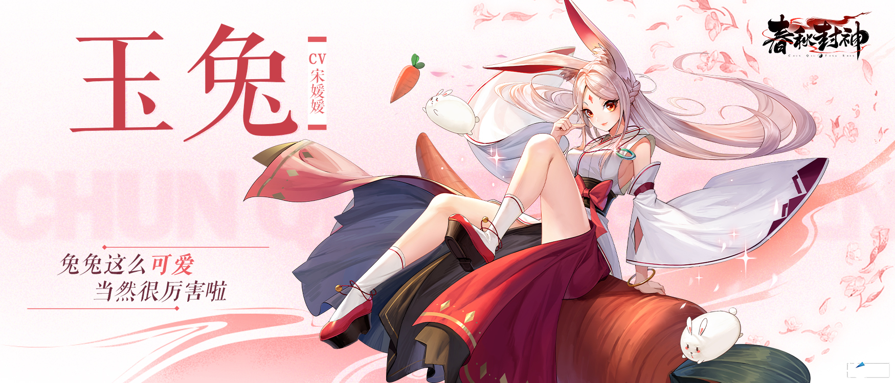 玉兔粉粉嫩嫩是不是很可爱,看起来就很古灵精怪。虽然玉兔只是一只广寒宫捣药的小兔子,但在《春秋封神》中将其打造成了一个非常具象化的人物,而且被赋予超高的武力哦!立绘中玉兔的兔耳朵还有粉头发,以及红白相间的裙子都非常好地呈现了玉兔地精灵语古怪,可爱中还带有一丝丝的调皮,其中的胡萝卜和小兔子元素也是“可爱加成”!玉兔的立绘展现的整体形象就让人非常的喜爱,当然了玉兔还是非常百变的,充满攻击力的小玉兔更加有魅力哦!大家觉得玉兔怎么样呢?
