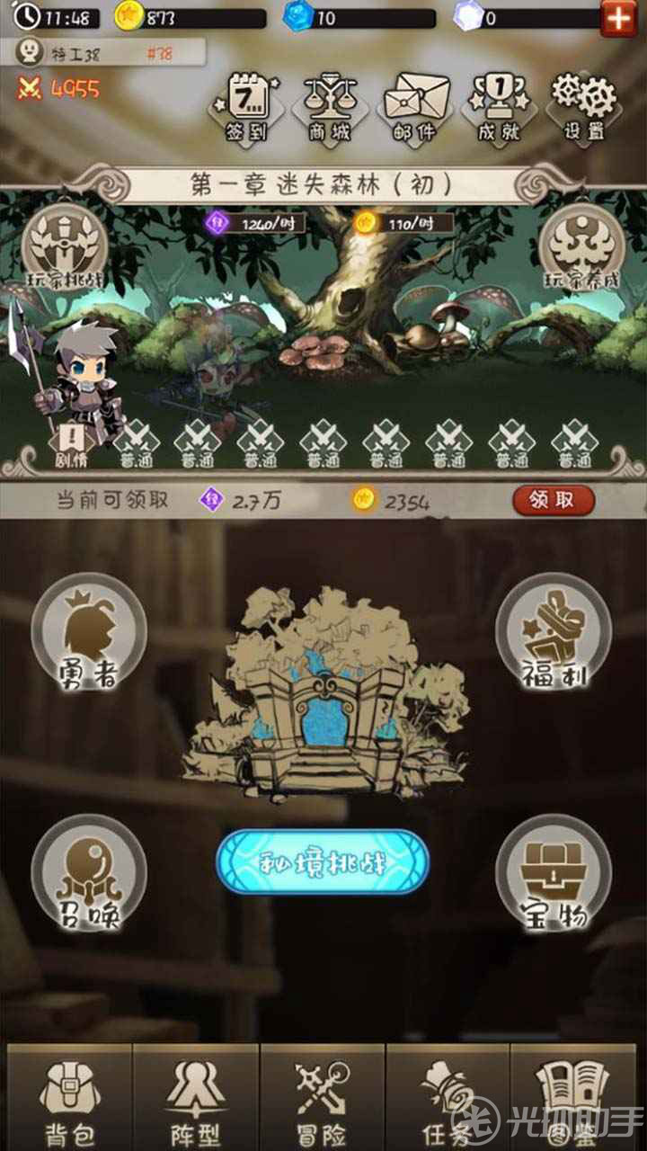 这是一个混乱的世界,玩家通过不断的收集英雄,宝物,技能或阵型来增强自己的实力。