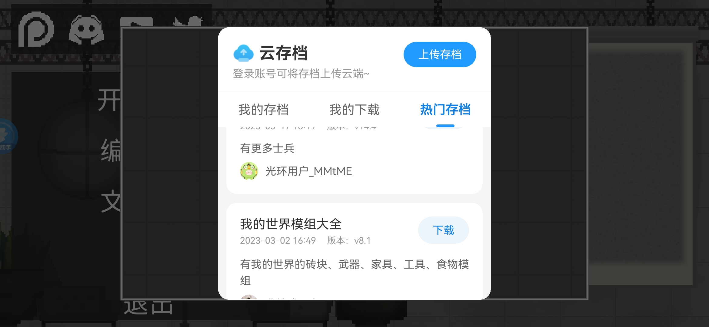 方法1:进入游戏,点击悬浮窗内的【云存档】图标,点击热门存档,即可选择对应的存档进行下载并使用。