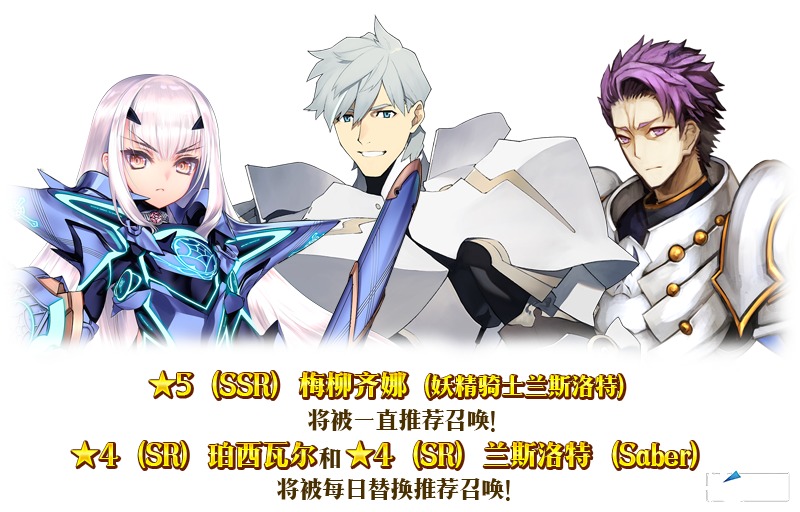 ※有关「★5(SSR)梅柳齐娜(妖精骑士兰斯洛特)」,「妖精骑士兰斯洛特」完成灵基再临第2阶段后名称变为「梅柳齐娜」。