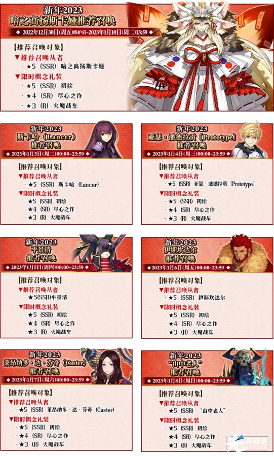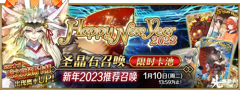 为了迎接2023年的到来,全新登场的限定从者「★5(SSR)暗之高扬斯卡娅」和3种限时概念礼装将被推荐召唤!