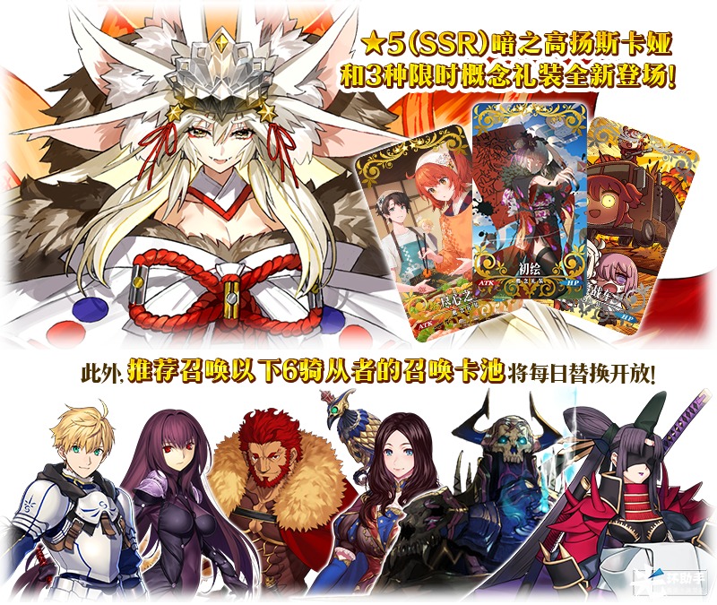 此外,推荐召唤6骑★5(SSR)限定从者和限时概念礼装的6种召唤卡池将每日替换开放!