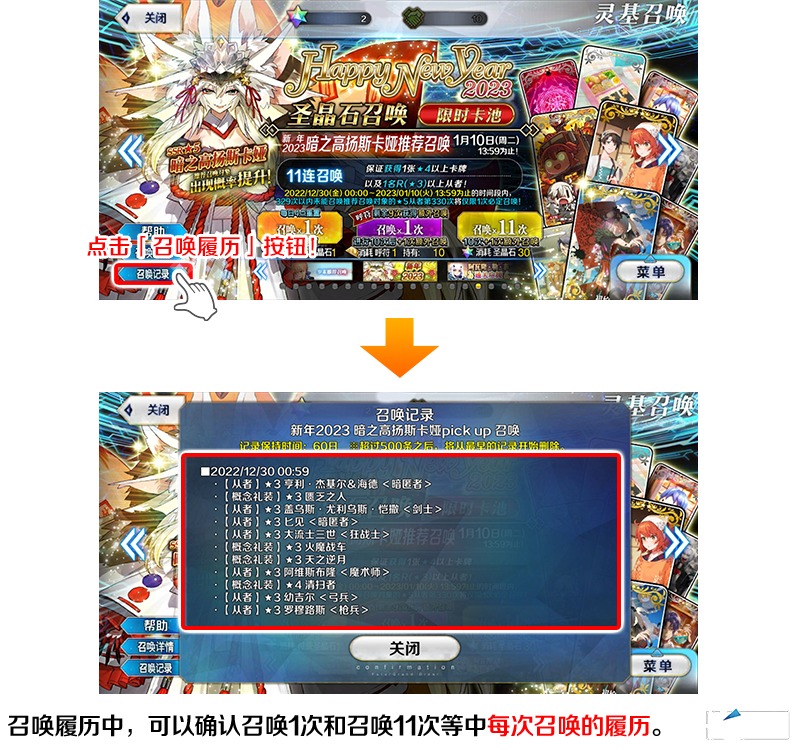 限时召唤、剧情卡池、友情点召唤等召唤均为「召唤履历」机能的对象。