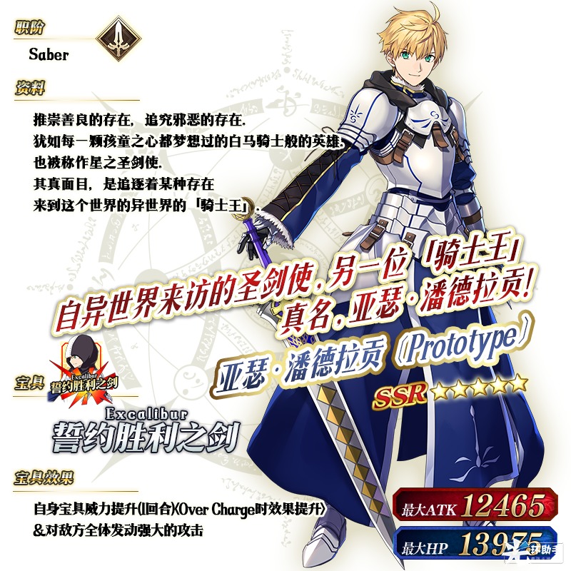 ※以上「★5(SSR)亚瑟•潘德拉贡〔Prototype〕」的立绘为灵基再临第2阶段。