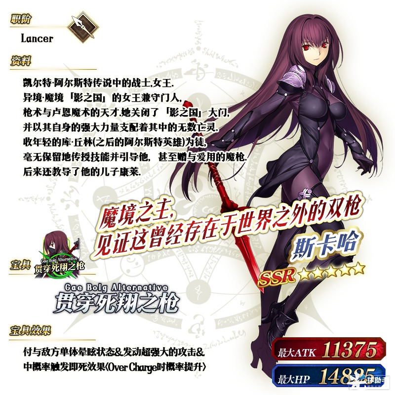 ※以上「★5(SSR)斯卡哈(Lancer)」的立绘为灵基再临第2阶段。