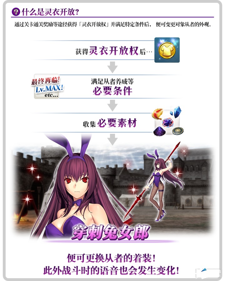 ※「灵衣开放」仅会改变从者的外观,对职阶或数值等无影响。