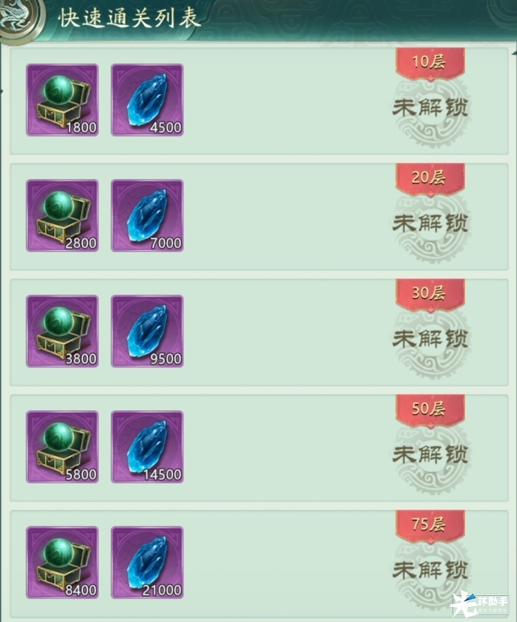 每天可进行2次快速通关,收获对应最高层数的奖励。