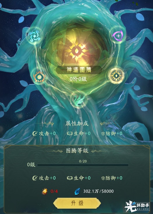 在”扶桑树“消耗挑战试炼获得的晶石,升级“图腾”,即可得到该阵营全体异兽的加成。