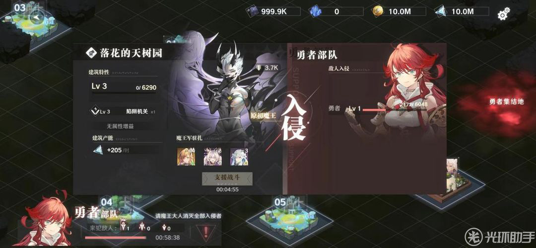 随着主城等级的提升,还会遭到入侵者进攻,请提前派遣您的魔王军进行守卫。也可以手动协助防御!