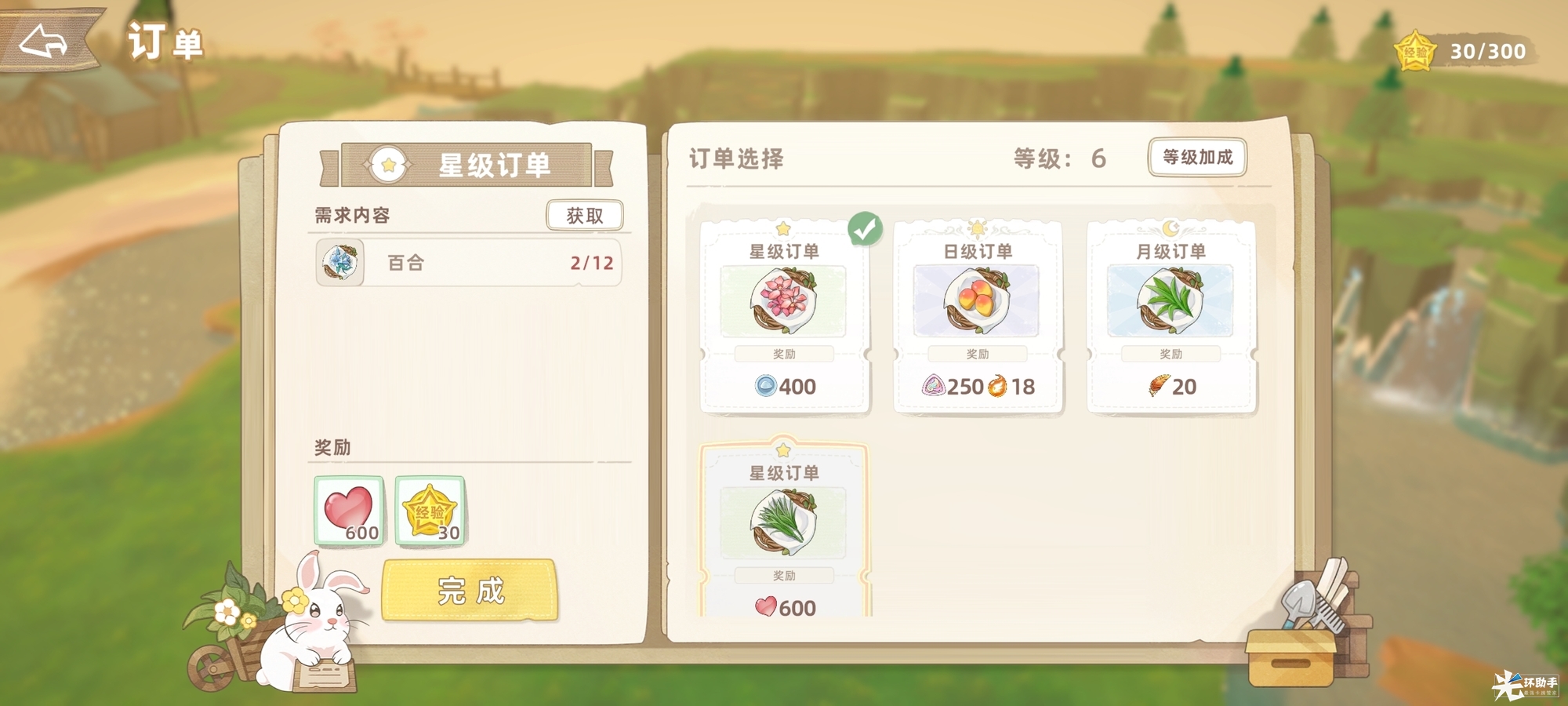 完成一笔订单可获得30云泊积分,等级提升可解锁更多上限,例如每日或每周订单上限、土地放置上限、奖励获取加成、订单显示数量。也就是等级越高,你的土地和订单都会越多,获取资源效率就越高。