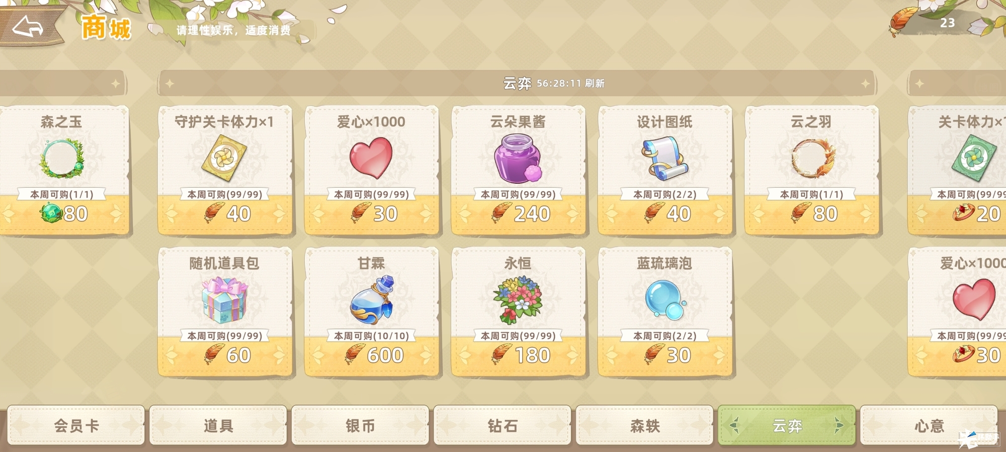 云动之弈作为月级订单的报酬,用处可不小。可前往商店处兑换设计图纸、蓝琉璃跑等转盘用道具,解锁更多的建筑或者是精灵技能哦。