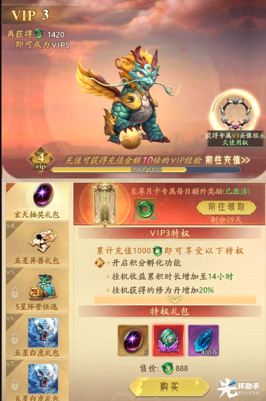 激活普通月卡:30天每日可领120仙玉,总计仙玉*3600
