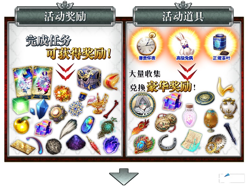 ※活动道具交换时间结束后,「尊贵怀表」、「高级兔偶」、「正规茶叶」将被删除。