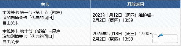 2023年1月12日(周四)维护后~2月2日(周四)13:59为止