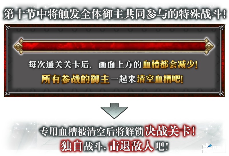专用血槽为全体御主共享。全体御主反复挑战关卡清空血槽后,便可彻底击退敌人。