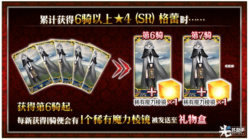 获得第6骑「★4(SR)格蕾」起,每新获得1骑便会有1个稀有魔力棱镜被发送至礼物盒。