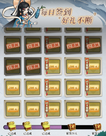 每日签到都能获得200元现金卡,累签2天额外送200元现金卡,累签5天额外送300元现金卡,累签10天额外送500元现金卡,累签20天额外送1000元现金卡,累签30天额外送2000元现金卡,每月共获得10000现金卡,使用现金卡后还能激活累充活动!