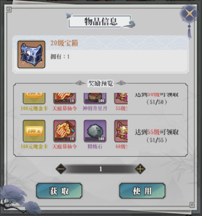 开局即送VIP10、5万仙玉,万充百抽大礼包!万充百抽大礼内含有10000元现金卡和200次天庭募仙抽奖,完成等级条件即可免费获得了,开局奖励绝不含糊!