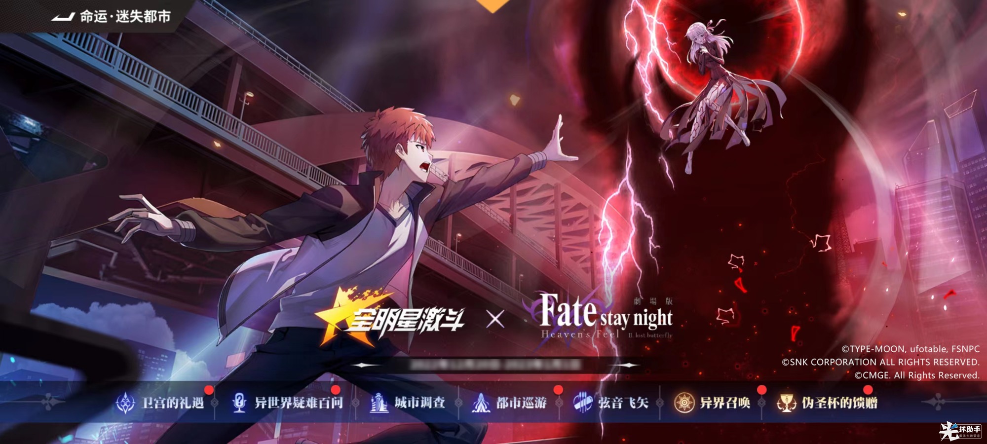 各位经纪人可以在首页右侧banner进入联动活动,本次活动分为<卫宫的礼遇>、<异世界疑难百问>、<城市调查>、<都市巡游>、<弦音飞矢>、<异界召唤>、<伪圣杯的馈赠>七个板块。