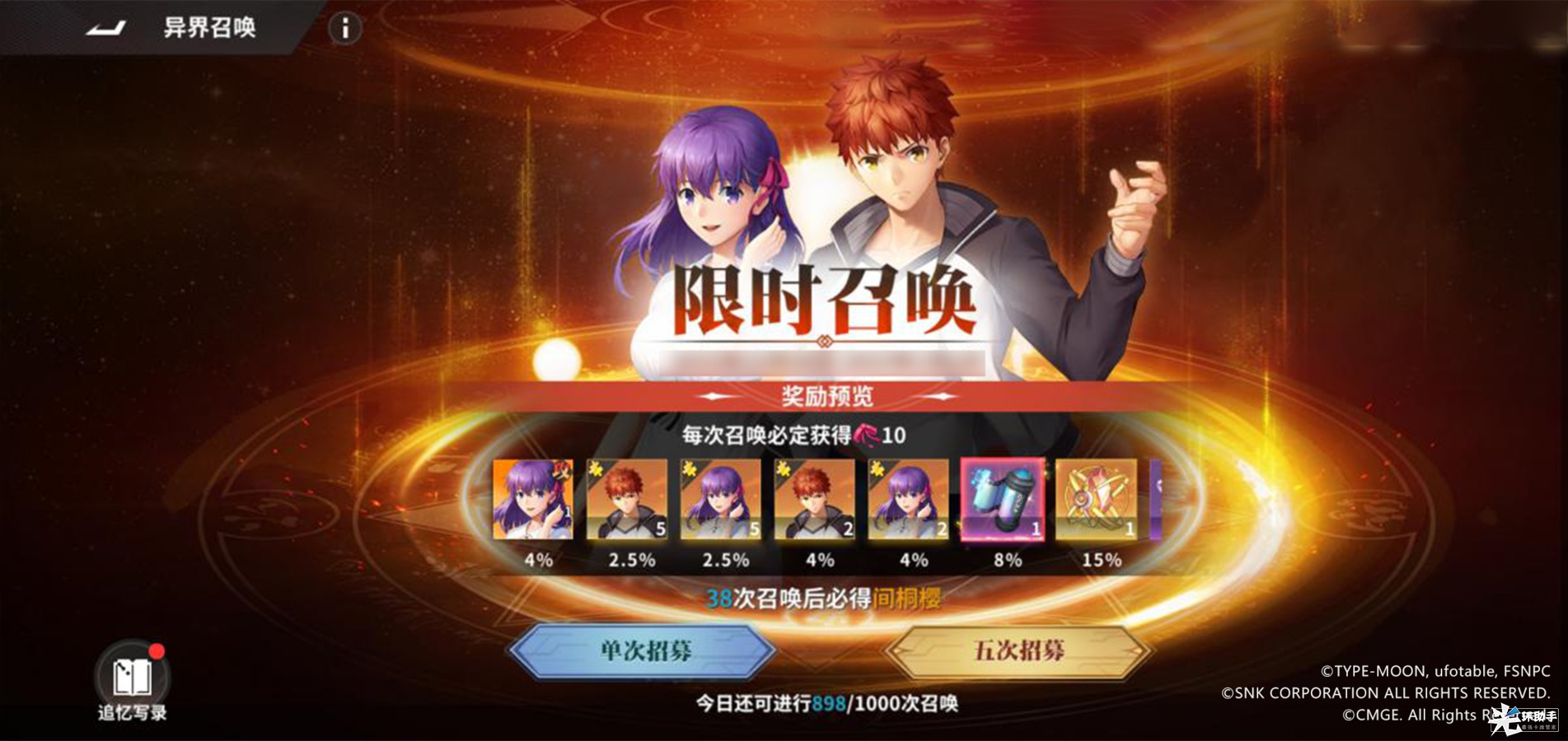同时,全服的经纪人在进行【异界召唤】抽卡所累积的抽卡次数还可以解锁间桐樱的回忆。