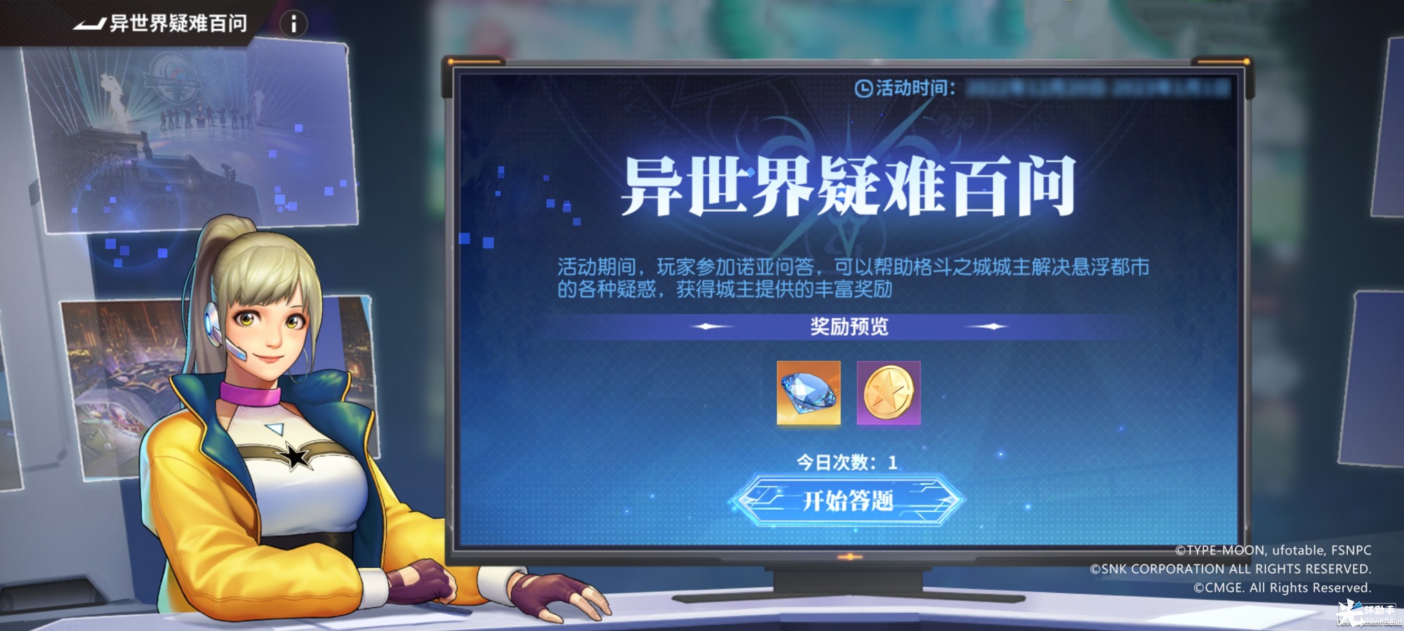 在【异世界疑难百问】中,各位经纪人需要参加诺亚的问答,帮助格斗之城城主解决悬浮都市的各种疑惑。贝尔悄悄瞅了一眼诺亚的题库,哼哼~还是有点难度的哦!不过肯定是难不倒贝尔啦>w<(悄悄掏出手机打开搜索框......)
