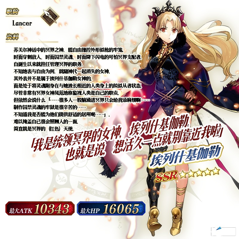 ※以上「★5(SSR)埃列什基伽勒」的立绘为灵基再临第2阶段。