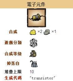 饥荒海难电子元件有什么用?怎么获得?电子元件是科学类在资料片巨人王朝(ROG)、船难(SW)新增物品。制作时需要科学仪器,需要消耗一个石砖和两个金矿。