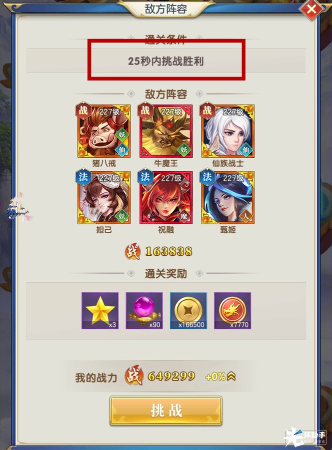 ②挑战前,记得把装备重新穿戴下,因为平时主力阵容的装备肯定不会都是一个职业的,要把所有装备都穿戴到上阵职业身上。