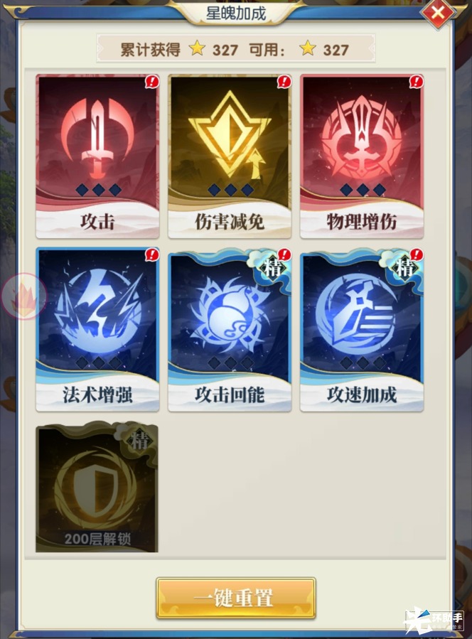 ②根据阵容,擅于利用星魄加点。攻击、攻击回能、伤害减免、开局无敌是通用性功能,哪种阵型都能用。物理增伤、攻速加成适合刺客职业,法术增强适合法师职业。星魄加点的原则:前期优先点增攻型的,如攻击、物理增伤、法术增强,攻击点到一定程度开始加攻速和回能;开局无敌这种,适合boss关或难度大的关卡,遇到过不去的boss时可以点,平时可以不点。boss特殊打法:星魄点开局无敌和全部加攻击的(法术加法、刺客加物理),加攻速、加回能,放弃减伤,用开局无敌为自己赢取快速放技能的时间,使输出最大化。