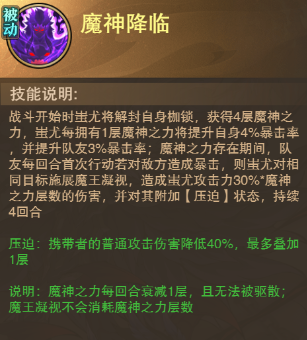 「魔神蚩尤」拥有超高的颜值、超强的面板属性、出色的技能机制。