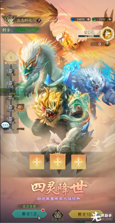通关【异兽试炼】还有机会获取四圣兽自选宝箱哦~快来挑战一下吧!