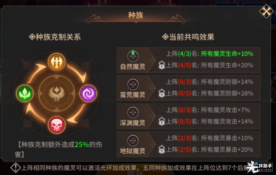种族克制额外造成25%的伤害,蛮荒》深渊》地狱》自然》蛮荒