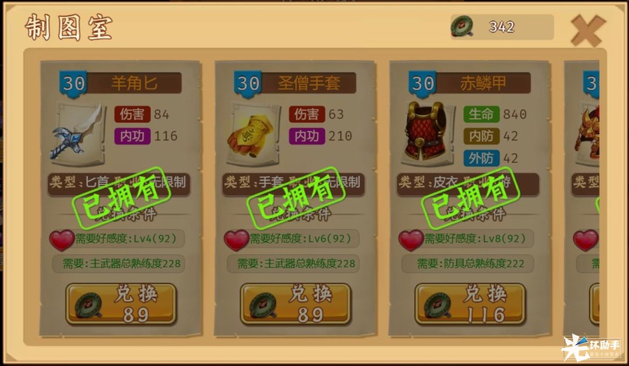 2. 在兑换条件上,除了门派好感度(征服度)、信物数量,有时也需要相应装备的【熟练度】,熟练度可在【神兵图鉴】中进行查看,还请掌门注意~
