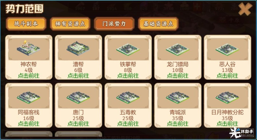 2.各门派有哪些相应资源和玩法?