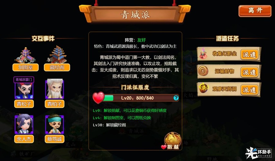 青城派:收集幻影尘、运输财物、观摩天师洞