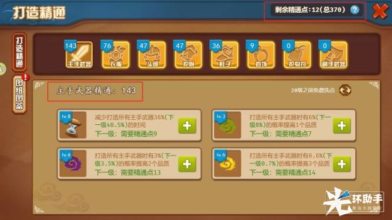1.进入神兵图鉴--打造精通,可在右上角查看目前剩余的精通点,精通点可以对某一类装备进行过精通加点,经过加点后的装备可以获得提高品质、减少打造时间等作用。此外,页面中也会显示当前装备的精通点。