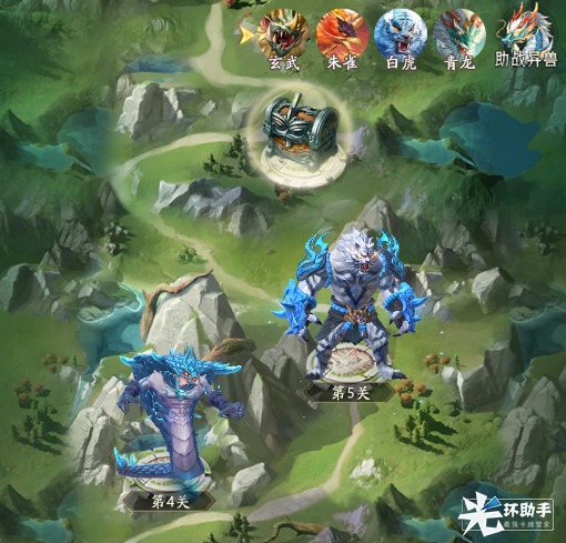 【上古神话】目前共有四圣诛魔、月宫灾变、有熊之盛、百草贤能、蛮荒暴君五大副本,每个副本有4个章节,通关完成可收获包括5星随机精魄、仙鳞异兽蛋、高级异兽蛋等大量奖励。关卡挑战时,元灵大人可选择一只主题异兽协助作战,助战异兽的星级和等级继承玩家拥有异兽中最高的数据。