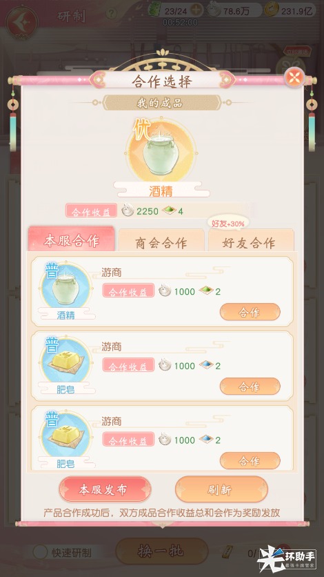 研制完成后可选择直接发布获取收益,也可选择其他掌柜进行联合发布,可获得额外奖励,与好友一同合作的话可获得额外30%的收益。