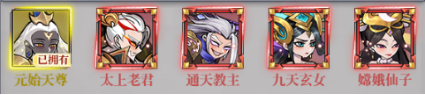 1.游戏中以通天教主、太上老君、元始天尊的组合技和技能输出是最强的;