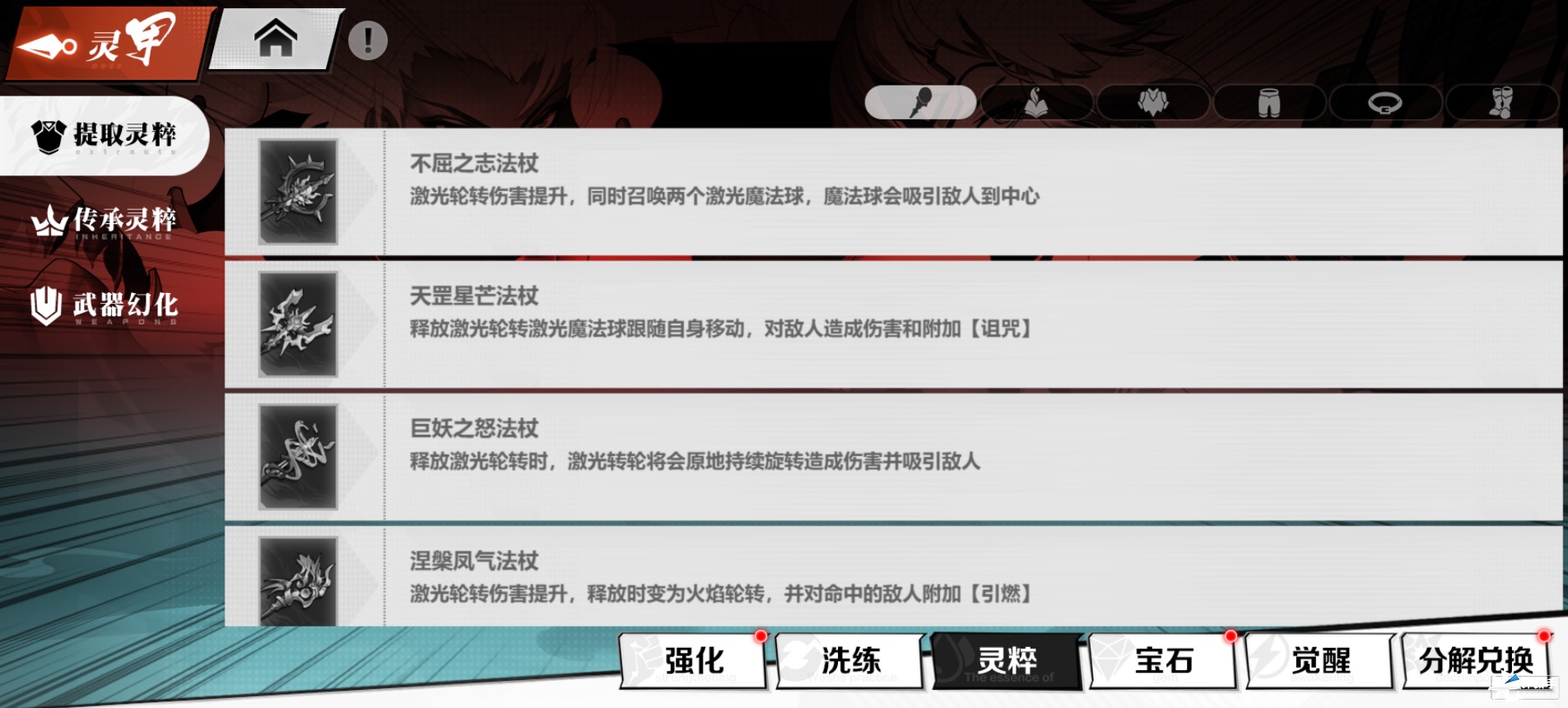 提取灵粹:可以将获得装备的【人灵技·武魂属性】提取出来,永久保存。