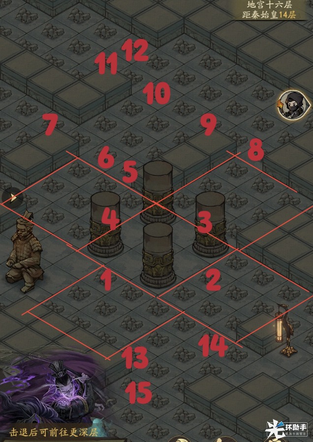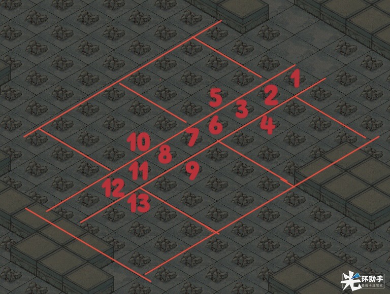3、如图:1区域出了3*3怪,可探索13位置,13位置出了3*3怪,可探索15位置。