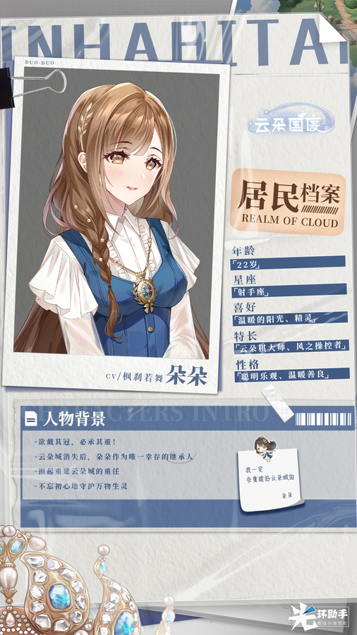 欲戴其冠,必承其重!云朵城消失后,朵朵作为唯一幸存的继承人,担起重建云朵城的重任。 据可可缜密观察,朵朵在建造云朵城总能临危不惧、并常常有更好的创意帮助建造云朵城。相信未来……在云朵们的努力下,一定能够重建好云朵城!